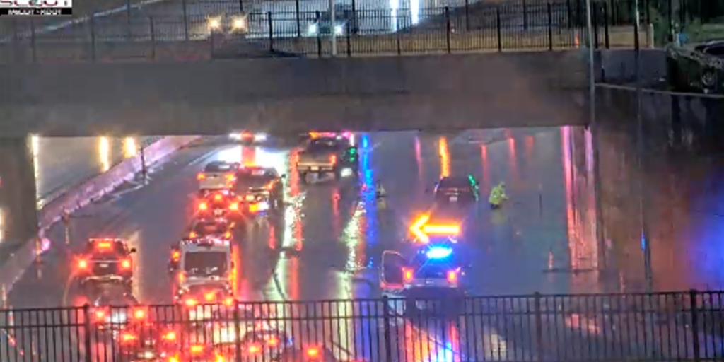 Traffic camera showed heavy flooding on Interstate 70 and Prospect Avenue. Severe storms also delivered wind gusts up to 70 mph around 4 a.m. local time.